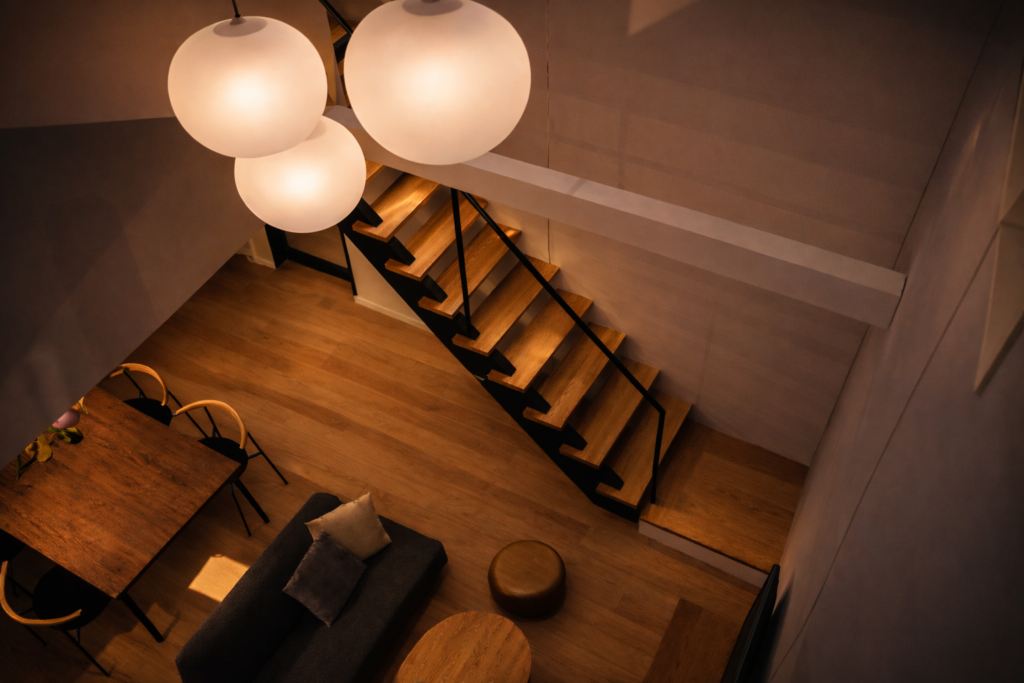 シーリングファンではなく、光で魅せる象徴的な「ペンダント照明」