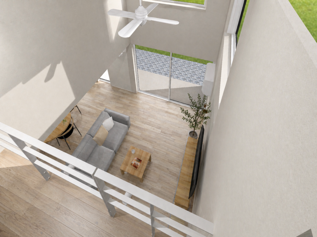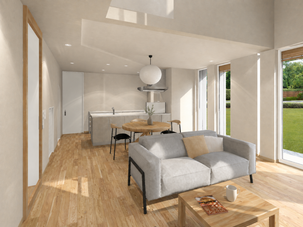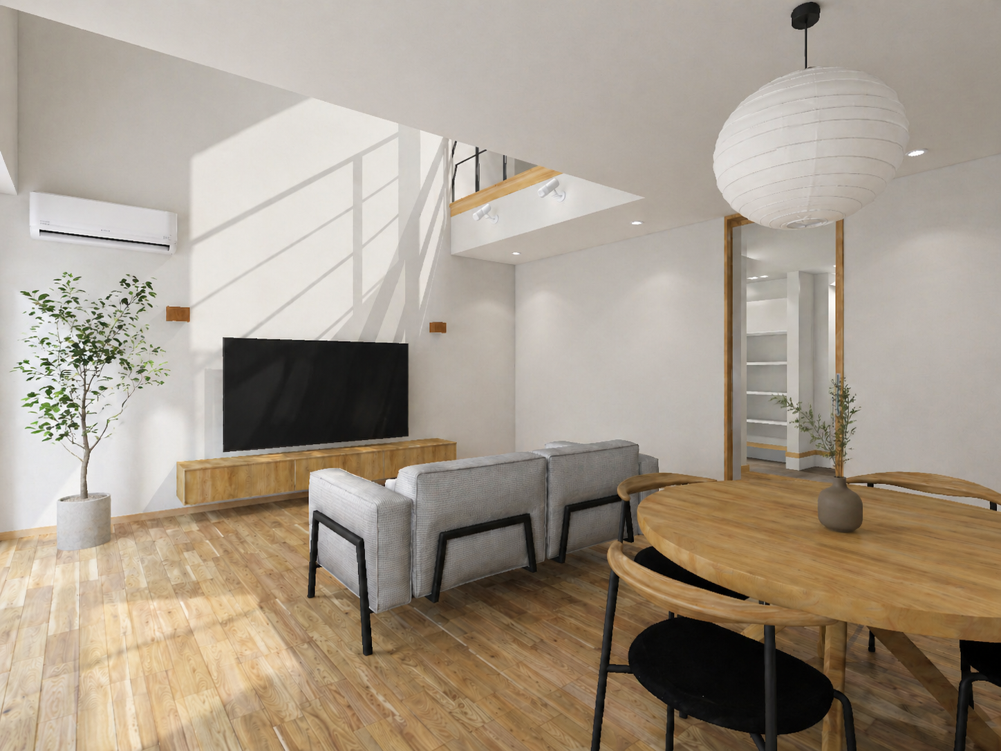 - リビング上部には吹き抜けを採用し、自然光が広がる開放感のある空間