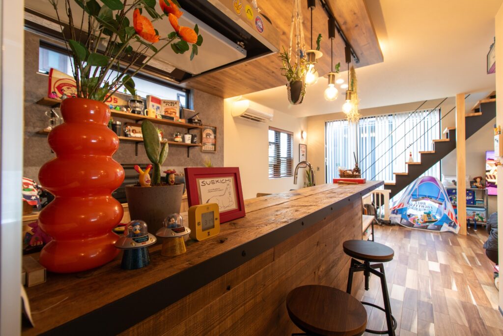 子どもがカウンターに座ったり、リビングで遊んだりと、それぞれが好きなことをしながら同じ空間で過ごせるのがとても心地いいです。