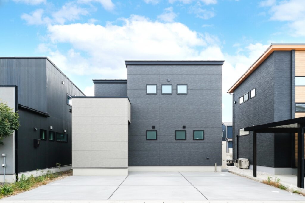 ダークグレーとライトグレーの2色使いの外観。